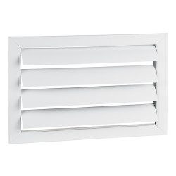 Бялата вентилационна PVC решетка с фиксирани жалузи 392x392 мм е подходяща както за вентилация, така и за извличане. Тя има фиксирани хоризонтални жалузи с наклон.